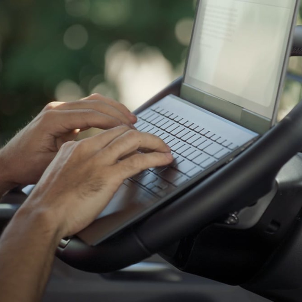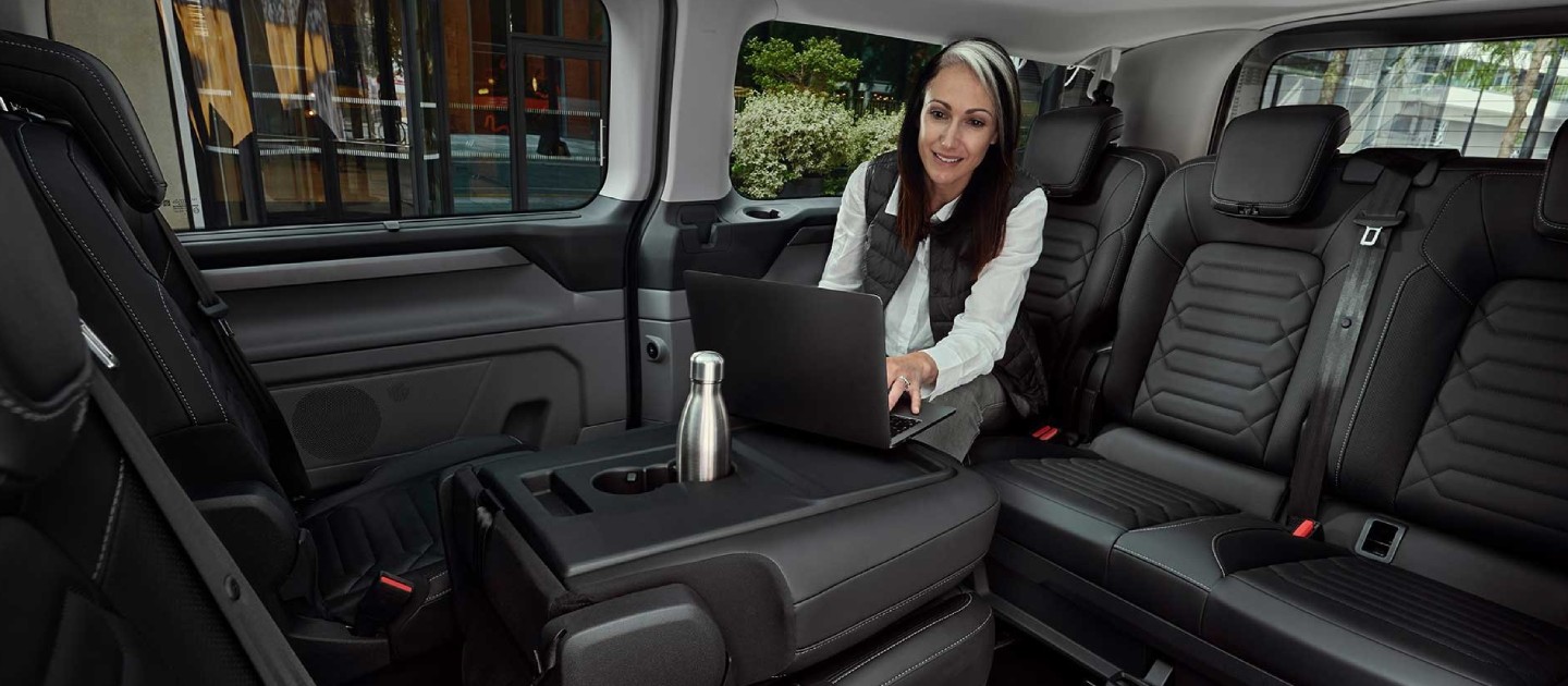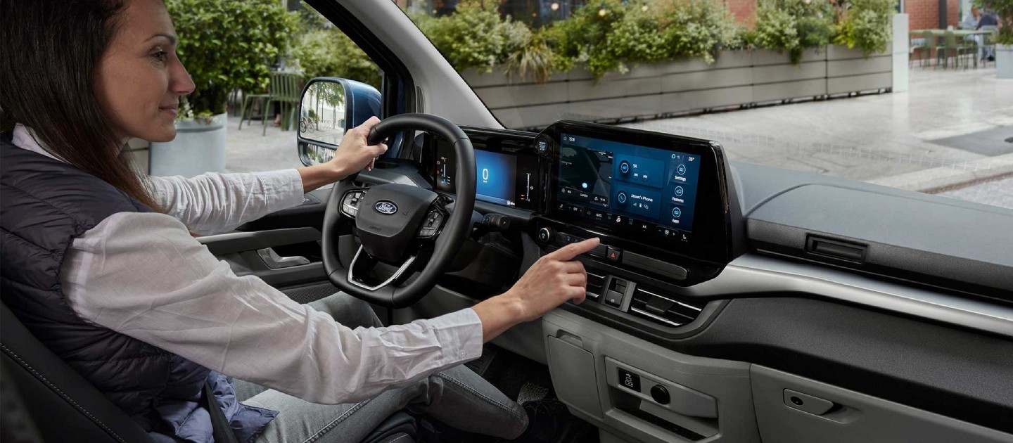 Considera il Tourneo il tuo ufficio in movimento. Ford SYNC 4 offre una connettività migliorata grazie a un nuovo modem 5G, un'integrazione perfetta con lo smartphone, un touchscreen da 13" e il riconoscimento vocale. L'innovativa funzione di inclinazione del volante pieghevole consente di creare una scrivania angolata quando si è parcheggiati, ideale per montare un laptop o pranzare.