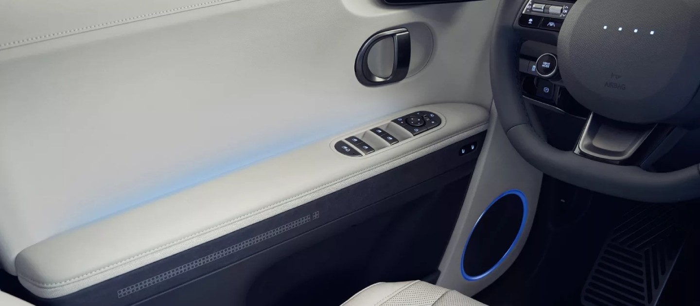 Quattro LED pixel sul volante ti accolgono e interagiscono, mostrando la modalità di guida e segnalando lo stato dei sistemi, come la carica della batteria.