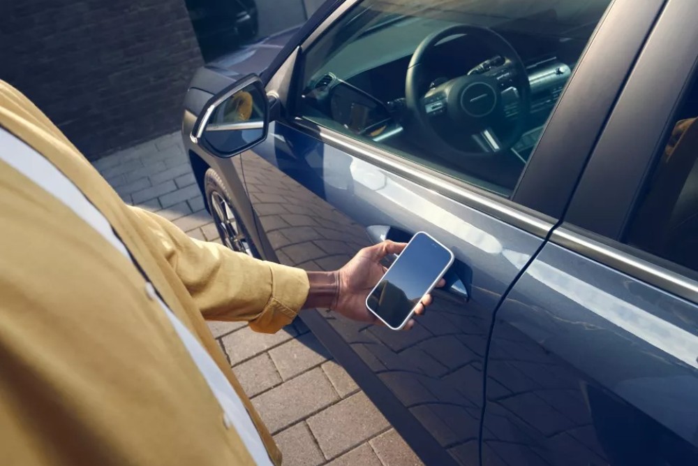 Con Hyundai Digital Key 2 Touch puoi aprire KONA semplicemente tenendo lo smartphone vicino alla maniglia delle portiere anteriori.