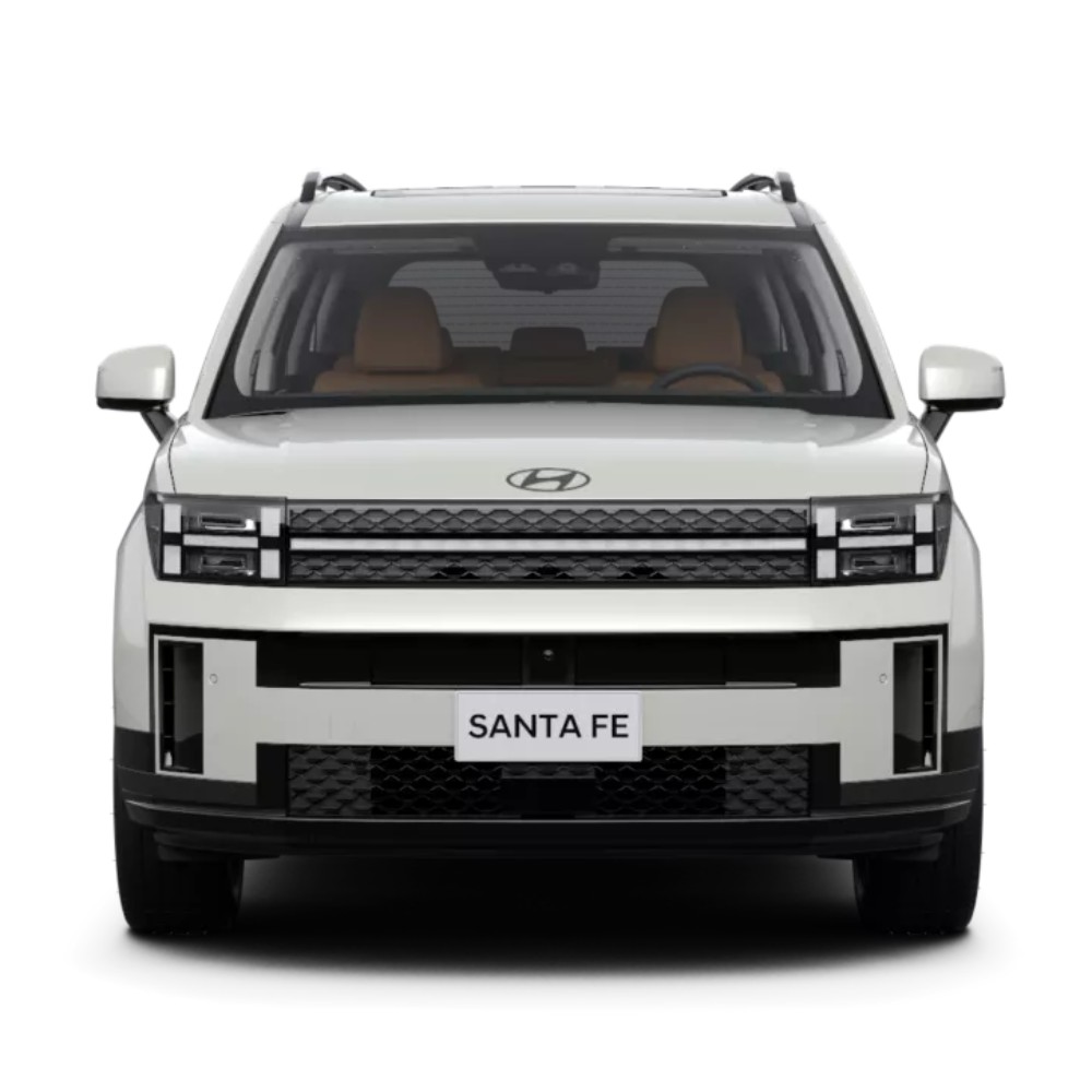 Fin dalla prima impressione, il frontale di SANTA FE comunica tutta la sua potenza grazie al cofano alto e ai fari iconici a forma di H. Le linee decise dei parafanghi si armonizzano perfettamente con la griglia cromata del radiatore per creare un assetto stabile e di carattere.