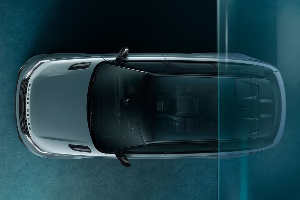 La luce inonda l'abitacolo. Il tetto panoramico fisso e scorrevole migliora la sensazione di spazio degli interni di Range Rover Velar.