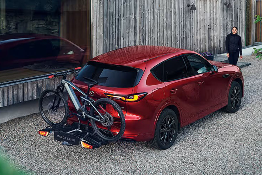 Robusto e leggero, questo accessorio originale Mazda trasporta due e-bike pesanti ed è facile da montare. Si ripiega nel bagagliaio senza abbattere i sedili, lasciando più spazio nell’abitacolo e semplificando il parcheggio. Può inclinarsi per accedere meglio al bagagliaio, dove una presa da 1.500 W ricarica una bici elettrica.