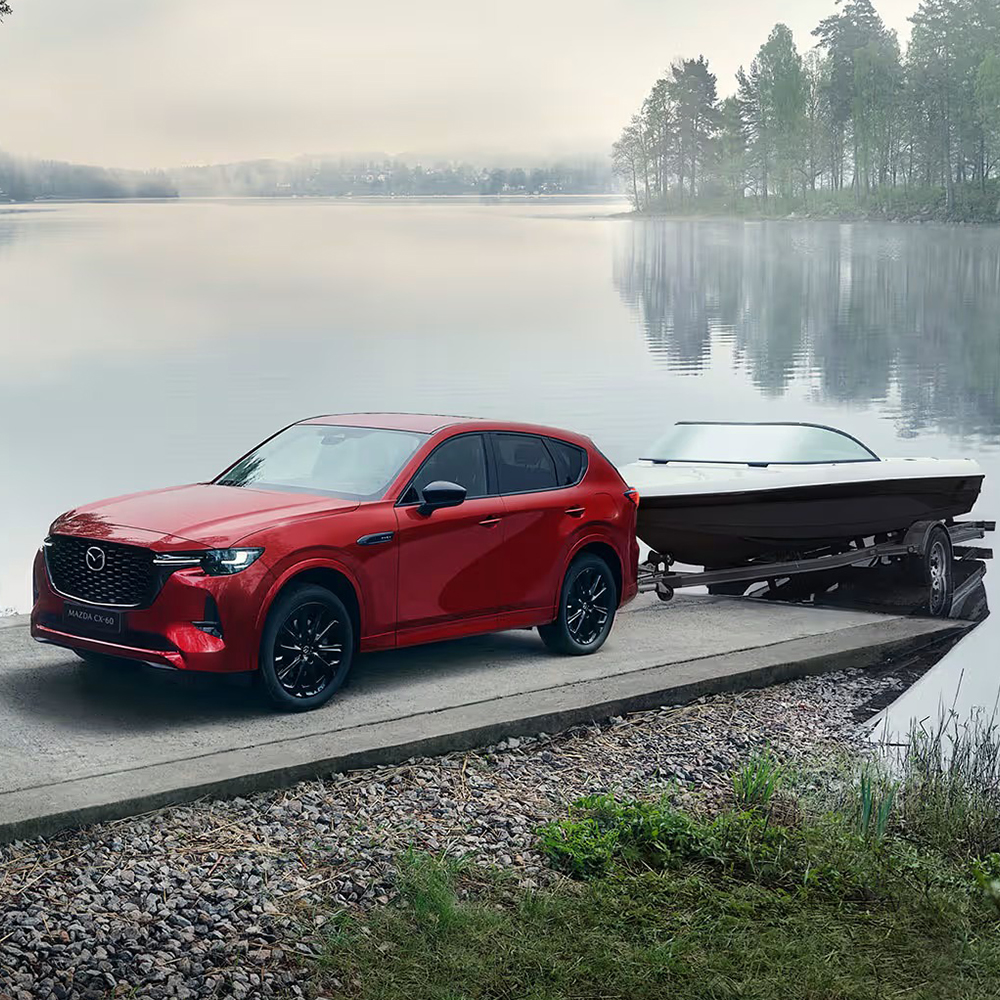 Grazie al suo comfort e alla possibilità di trainare in tutta sicurezza il tuo motoscafo, Mazda CX-60 è la compagna ideale se ami gli sport acquatici. Una volta giunto a destinazione, premi il pulsante nel bagagliaio e l’attacco del gancio di traino sparirà completamente.