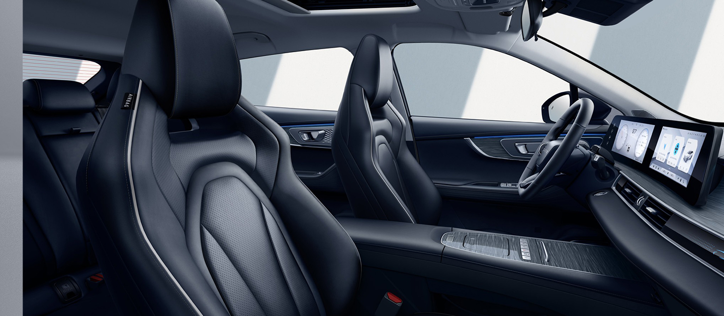 I sedili anteriori di OMODA 5 sono progettati secondo gli standard delle auto sportive. I poggiatesta integrati nella seduta e i supporti laterali avvolgono i passeggeri anteriori, garantendo massimo comfort. Sono rivestiti in ecopelle traforata di alta qualità.