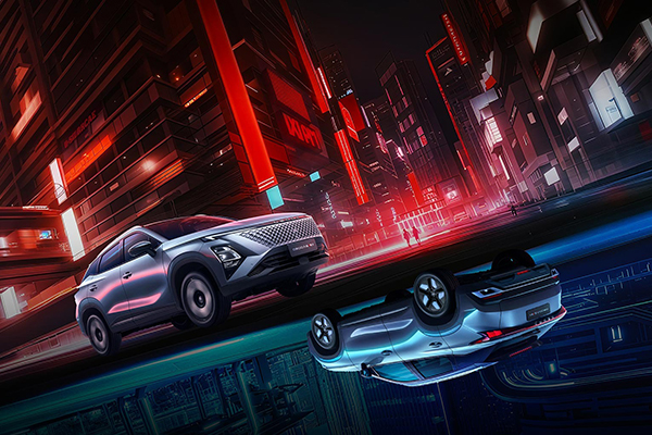 Ogni dettaglio sottolinea un aspetto audace, sportivo e moderno, dall'elegante griglia anteriore, alle luci di marcia diurna a forma di T, fino agli indicatori di direzione dinamici, creando un'immagine distintiva e sofisticata di OMODA 5 SHS-H.